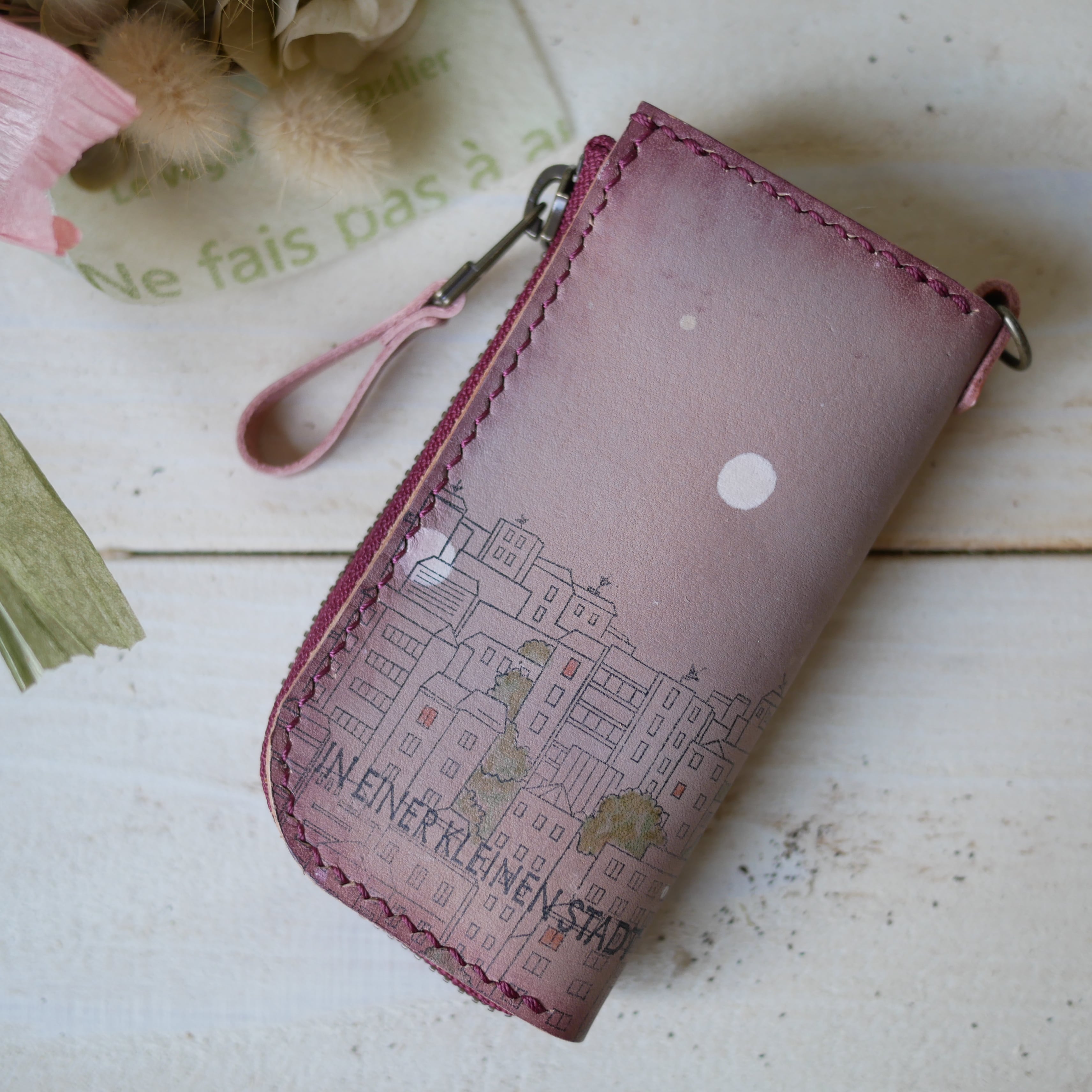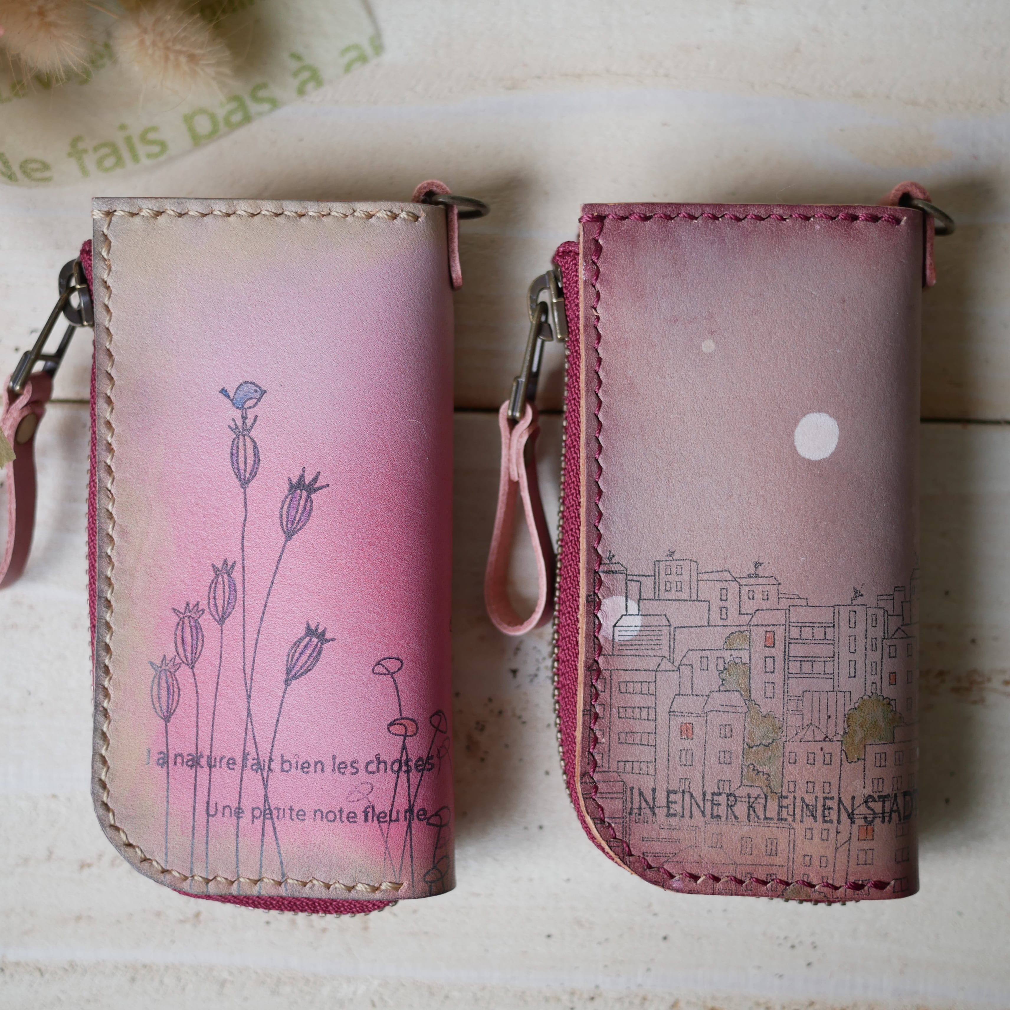 L字ファスナー スリムキーケース 4連 手染め スタンプ